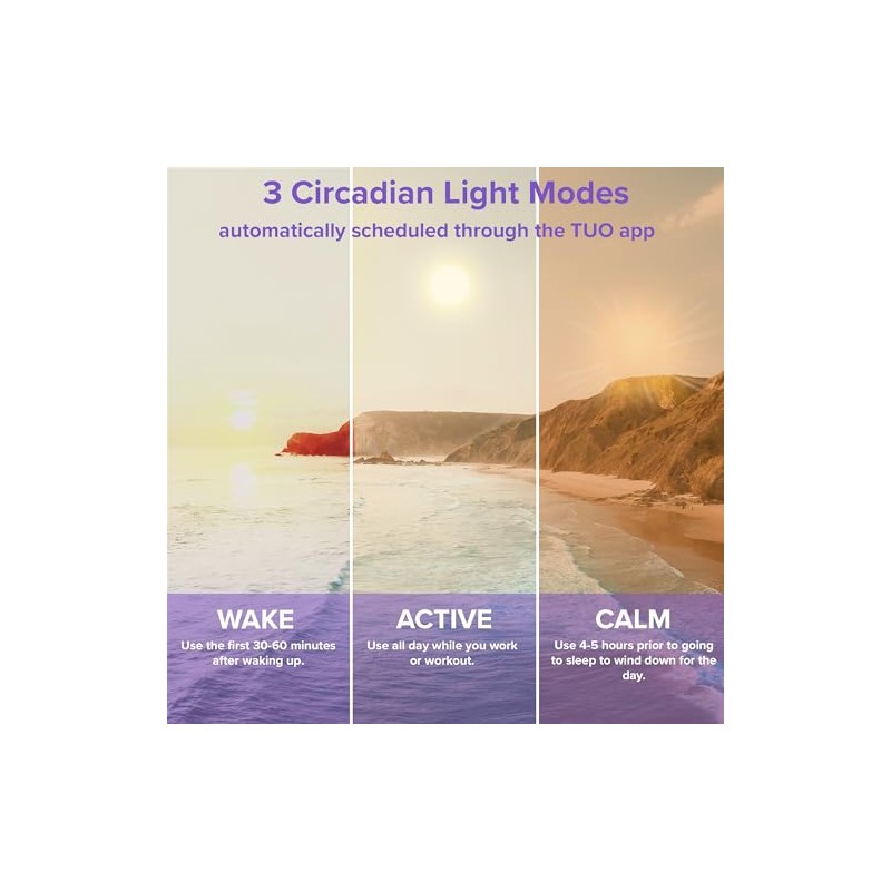 - New patented circadian lighting technology only from TUO targeting dawn detector mechanism in the eyes.
