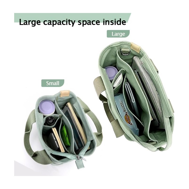Tuobo Small Tote Bag with Zipper, 2024 Canvas Multi-Pocket Crossbody Bag Shoulder Bag Satchel Hobo Bag Messenger Bag