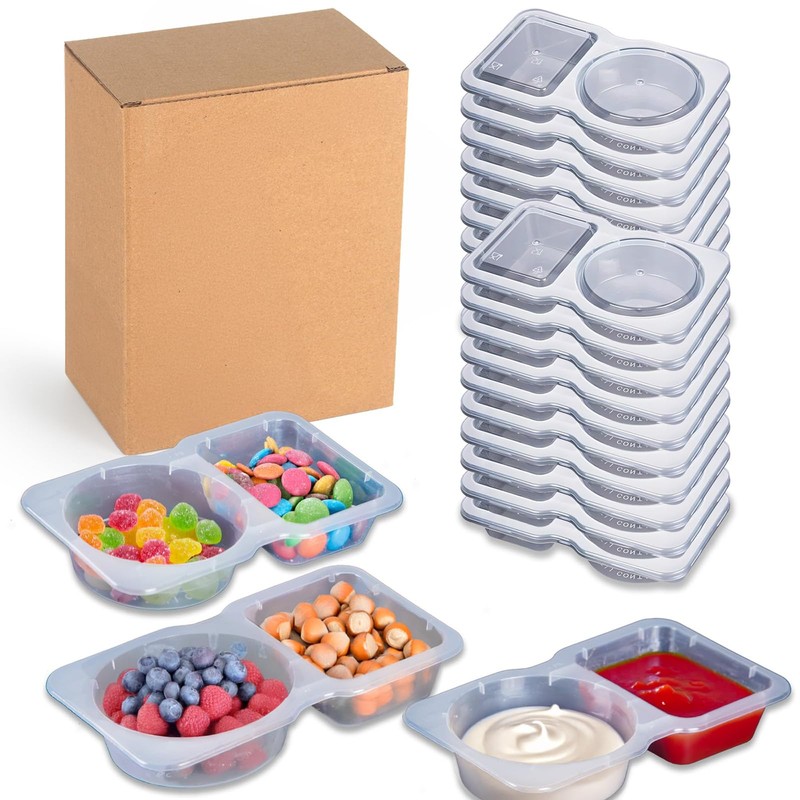 Tuocal 20 Sets Reusable Snack Containers, Snack Pots with Lids, Double Compartment Snack Containers, Portable Sauce Container Small Condiment Container