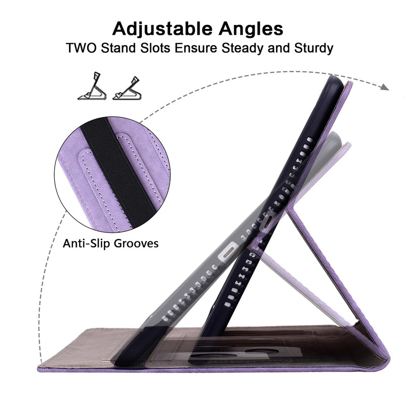- [Multi-Angle Viewing Stand]: The front cover is equipped with two non-slip grooves to support the device, and the viewing angle can be adjusted in multiple angles to free your hands at work and play.