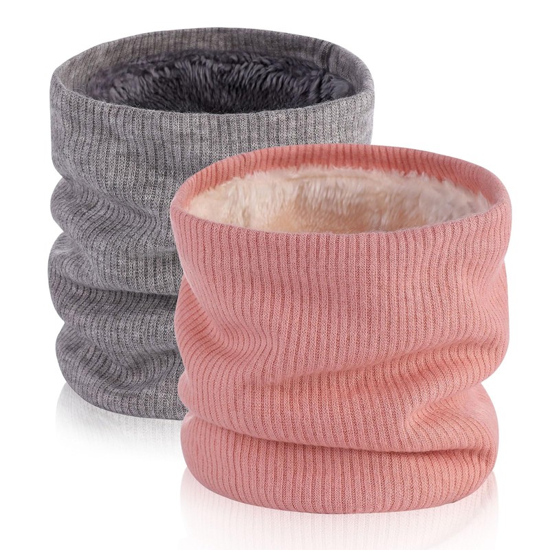 TUONYIS Pack of 2 Winter Neck Warmer Knitted Scarf, Pink-Grey Neck Scarf, Unisex Winter Neck Warmer, Windproof Winter Knitted Fleece Snood Scarf for Men and Women, Pack of 2, Unit size