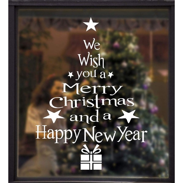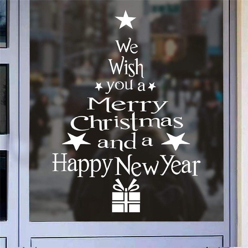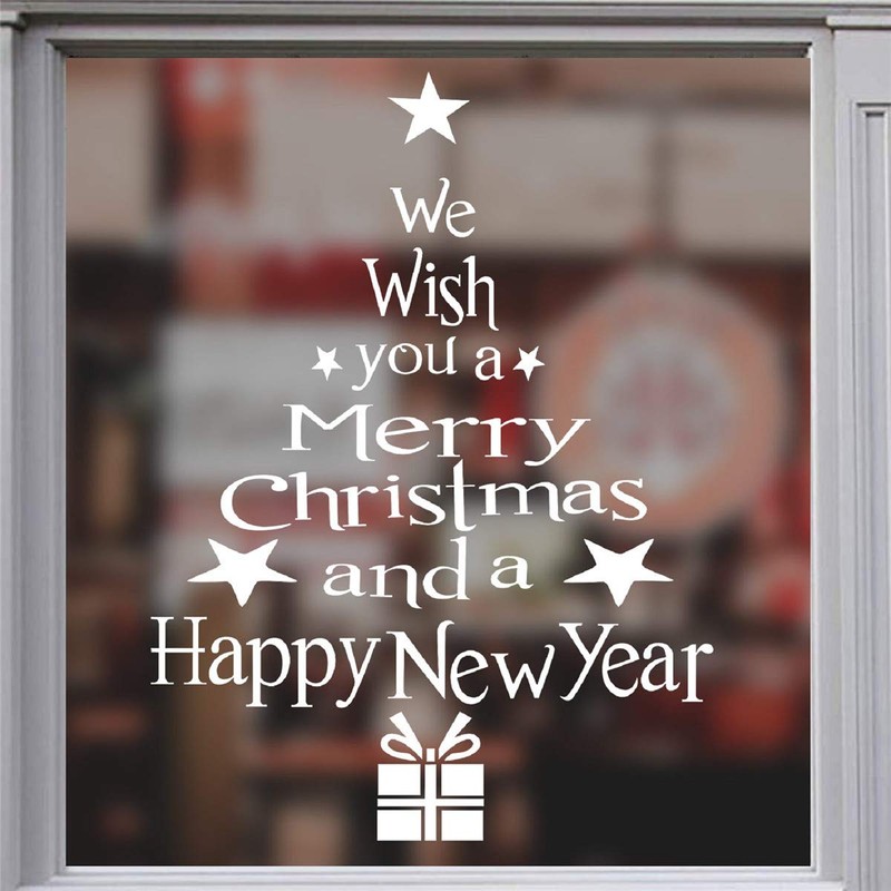 Tuopuda Christmas Sticker for Window, Christmas Tree Letters Stick Wall Art Decal Mural Wall Sticker(White)