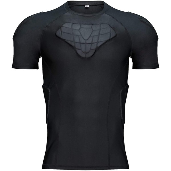 TUOY Padded Compression Shirt Padded Football Shirt Rib Chest Protector Shirt