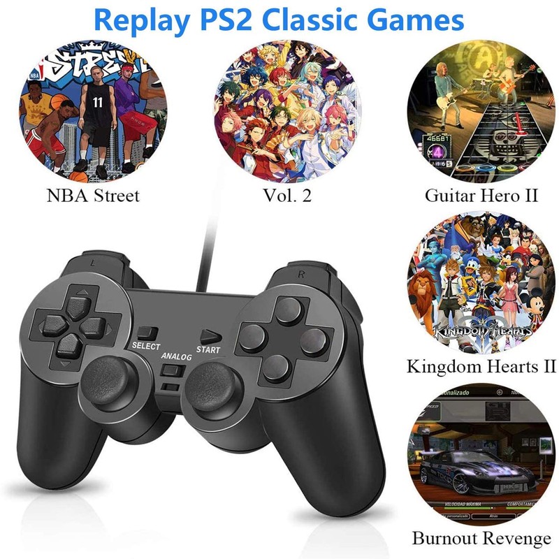 • 【Double Shock Enhanced Experience】PS2 double shock controller provides better vibration, has more realistic gaming experience, Ergonomic design, comfortable feel, fully enjoy the fun of game.