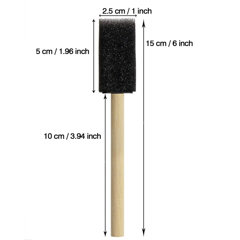 - The Poly Foam Paint Brush has a 10cm (3.94 inch) long fluted lightweight Wooden handle and tough plastic support panels, with a 5cm (1.96 inch) long x 2.5cm (1 inch) Wide flexible angled bristles sponge foam brush on top.