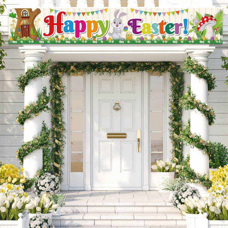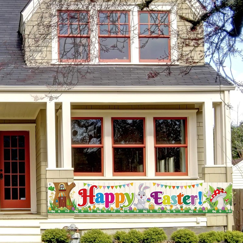 - Large Happy Easter banner, 9.8ft*1.6ft/3m*0.5m, large enough to stand out, perfect Easter party backdrop, Easter outdoor decorations