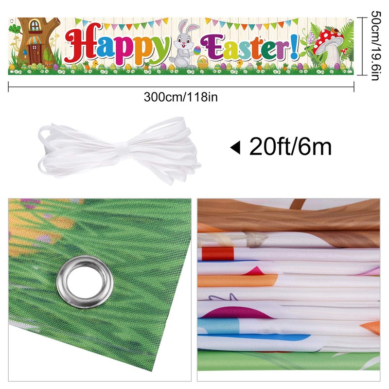 - Easy to use: The Happy Easter banner with grommet, come with 20ft/6m string, easy to hang through the copper grommet. Can be hung from the ceiling, door, window or trees. Ideal for Easter party supplies