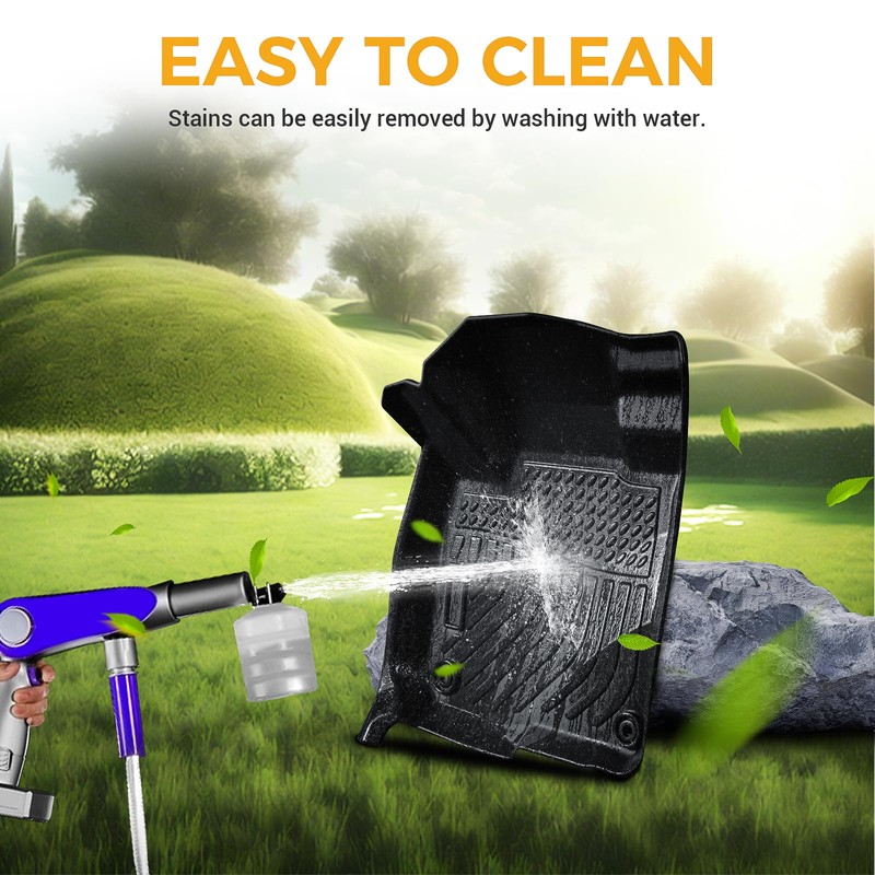 - Anti-Slip Design – The 3D extended border and textured surface keep the mats securely in place, preventing shifting while driving.