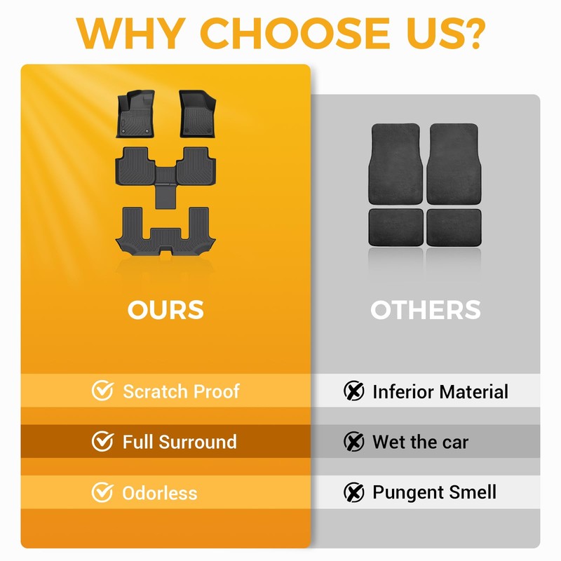 - Durability – Made from high-tensity TPE, these mats are wear-resistant, flexible in extreme temperatures, and free from harmful substances like cadmium and lead.