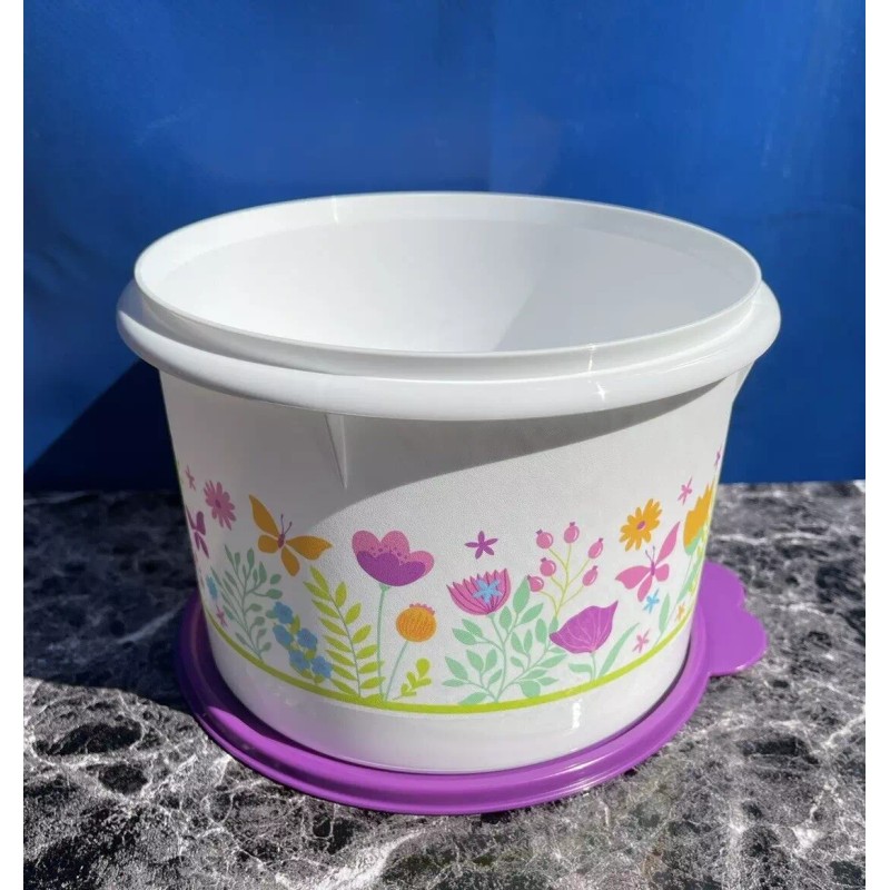 Tupperware  3.5 QT Bucket Canister w/ Handle Wild Purple Whith Flowers  New