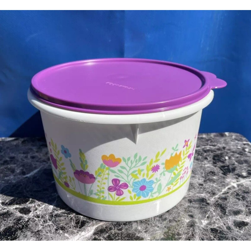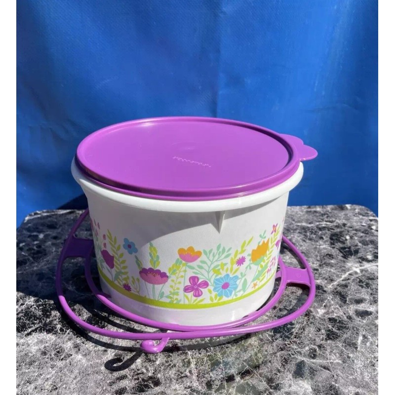 Tupperware  3.5 QT Bucket Canister w/ Handle Wild Purple Whith Flowers  New