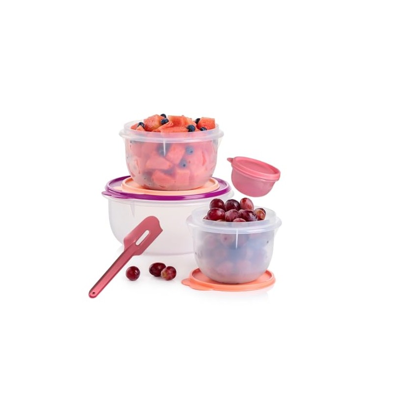 Tupperware Mixing Bowl Set with Paddle Spatula in Purple Pink