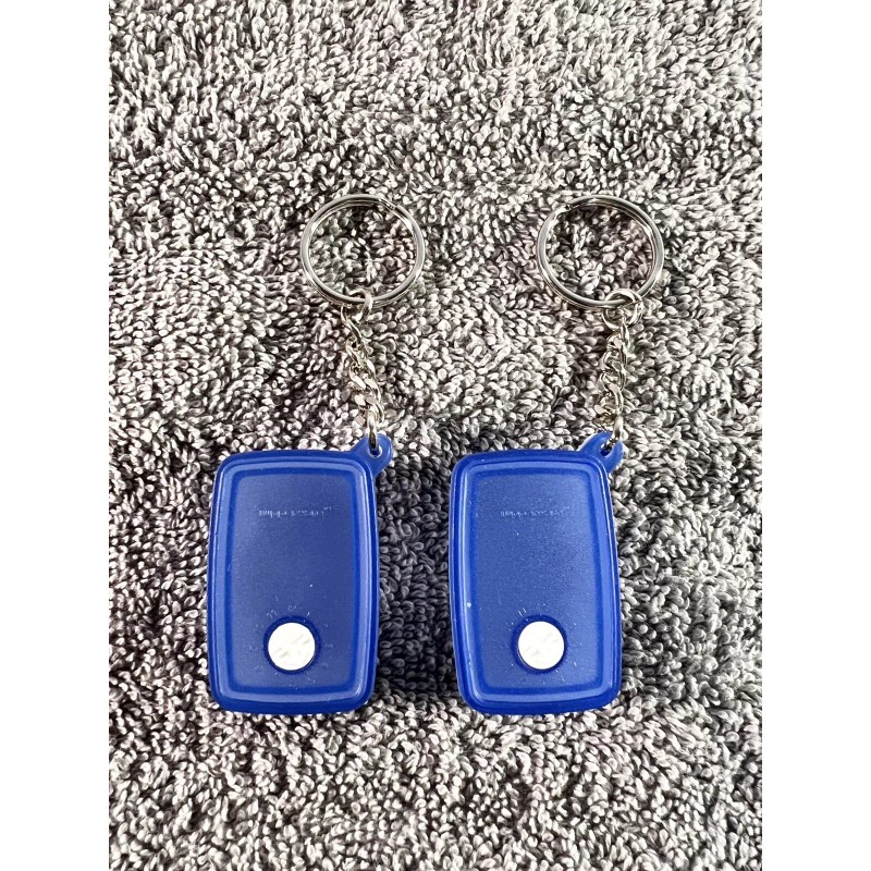 TUPPERWARE NOS RARE Key Chain Blue Lid With Clear Container Set Of 2