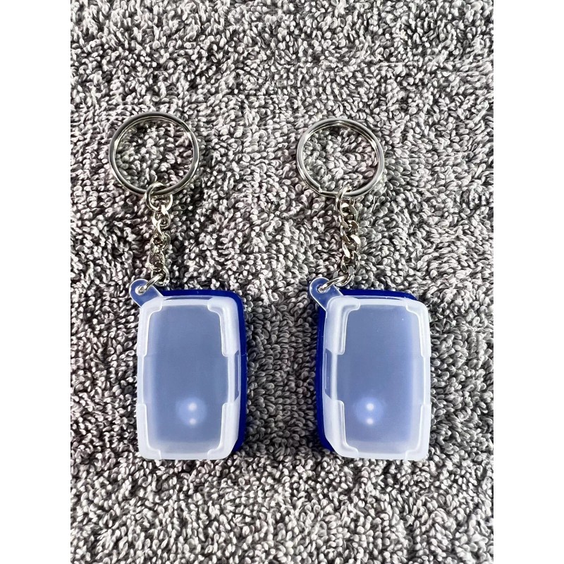 **BRAND NEW** TUPPERWARE Rare Key Chain Blue Lid With Clear Container Set Of 2