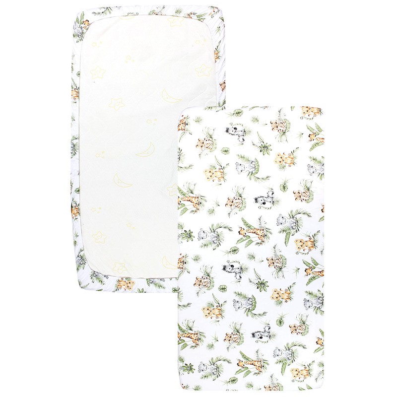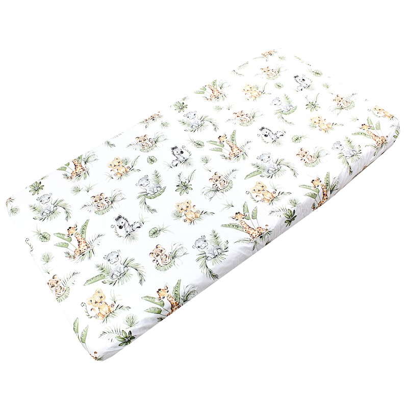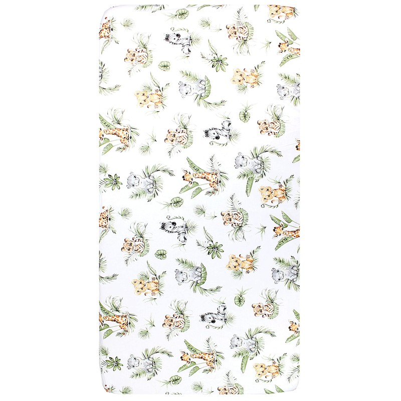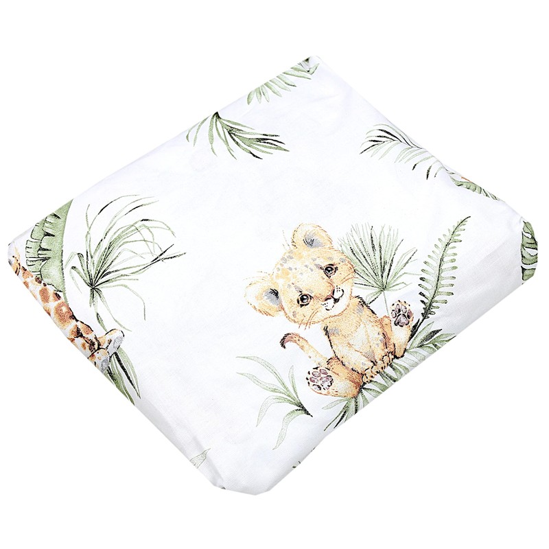 TupTam Baby Bed Crib Cot Fitted Sheets with Printed Designs, Safari/Lion/Brown/Leaves/Green, 60 x 120 cm