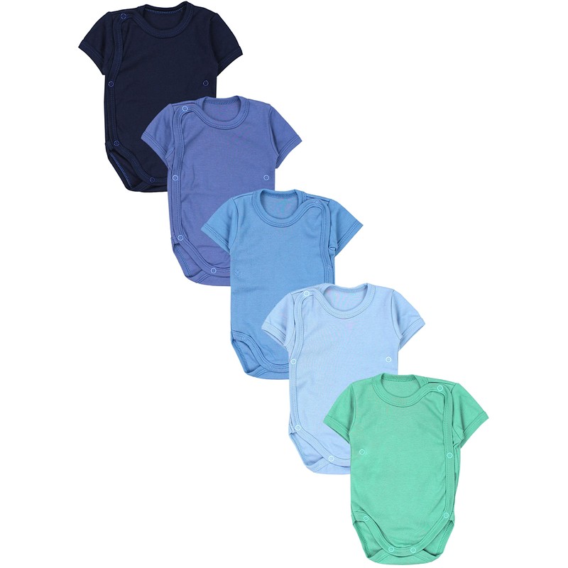 TupTam Baby Bodysuit Short Sleeve Boys - Wrap Bodysuit Short Sleeve Made of Cotton in Set of 5 - Oeko-Tex Certified, Dark blue jeans blue mint green