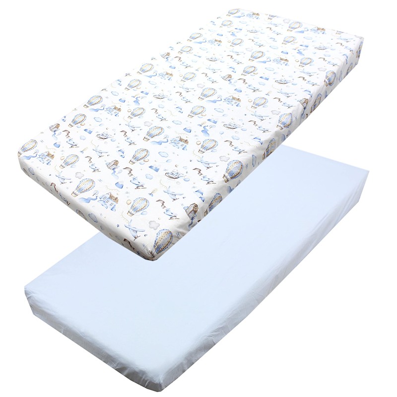 TupTam Baby Fitted Sheet for Baby Cot Bed Pack of 2, Colour: Hot Air Balloons Blue, Size: 70 x 140 cm