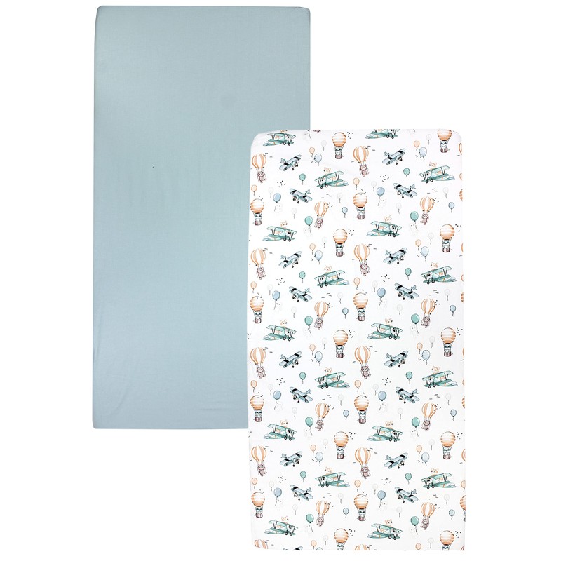 TupTam Baby Fitted Sheet for Baby Cot Bed Pack of 2, Foxes in Aeroplane/Green, Size: 70 x 140 cm