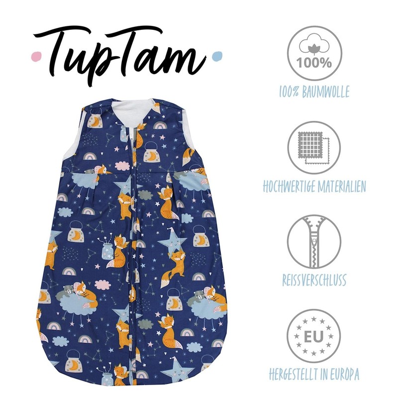 TupTam Baby Summer Sleeping Bag 0.5 Tog Made from Oeko-Tex Certified Materials, Foxes clouds / dark blue