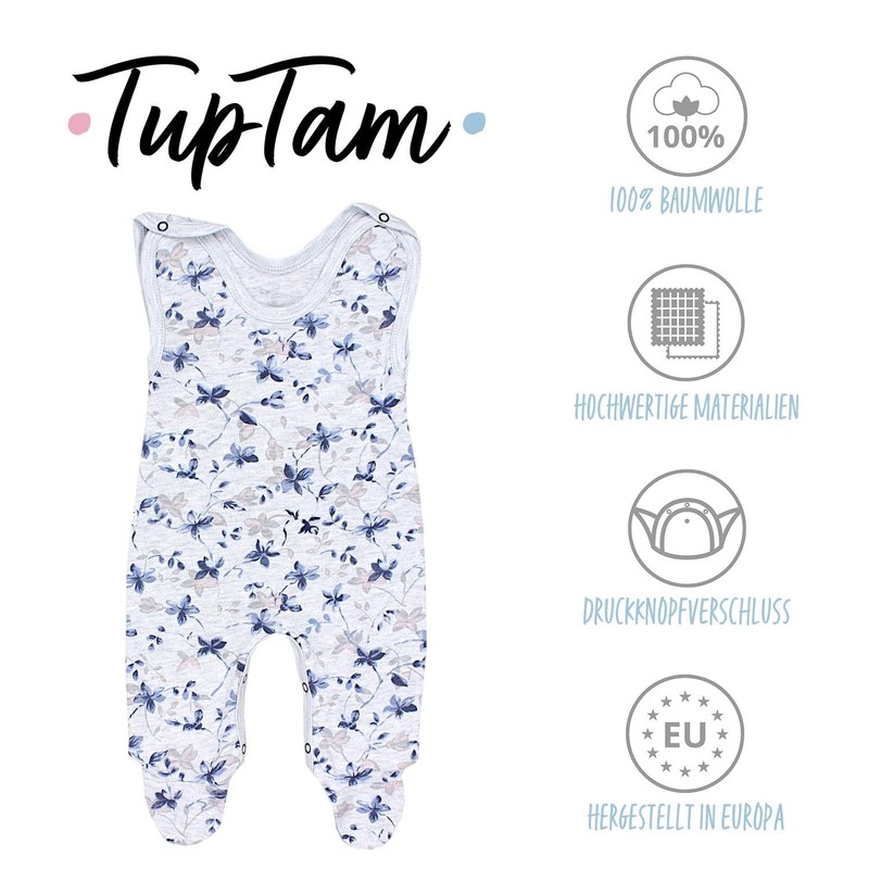 This comfortable baby romper with great prints is available in a set of 5. The soft cotton fabric guarantees natural air circulation, ideal fit and comfortable to wear. The practical press studs on the shoulder and crotch allow for easy changing and changing. The set includes 5 rompers with colourful prints and/or sayings, such as I love mum and dad in English (I love Mum & Dad and heart motif), young retro style, small owls, straps and bow tie, a shiny bow, etc. Frequent washing does not allow TupTam baby clothes to shrink or wear out. The clothes stay bright and fresh for a long time. The printed designs are also dyed with safe and long-lasting dyes, so that the clothes look very good even after repeated wear. Made in the EU.