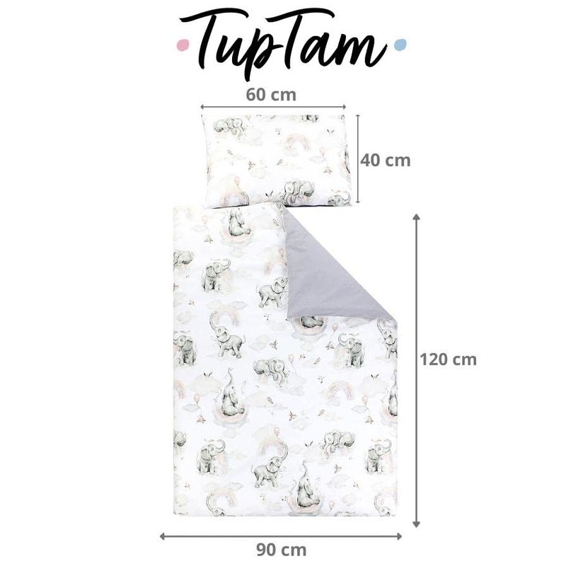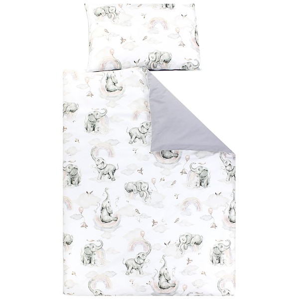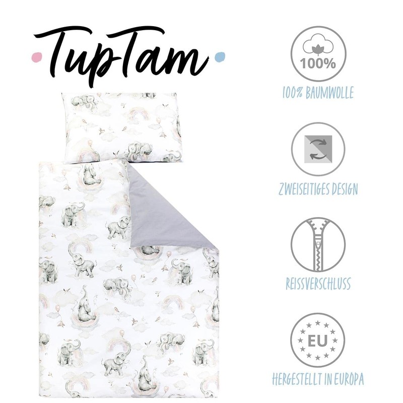 TupTam Children's Bed Linen Patterned 2-Piece Reversible Bed Linen, Colour: Elephant/Rainbow, Size: 135 x 100 cm