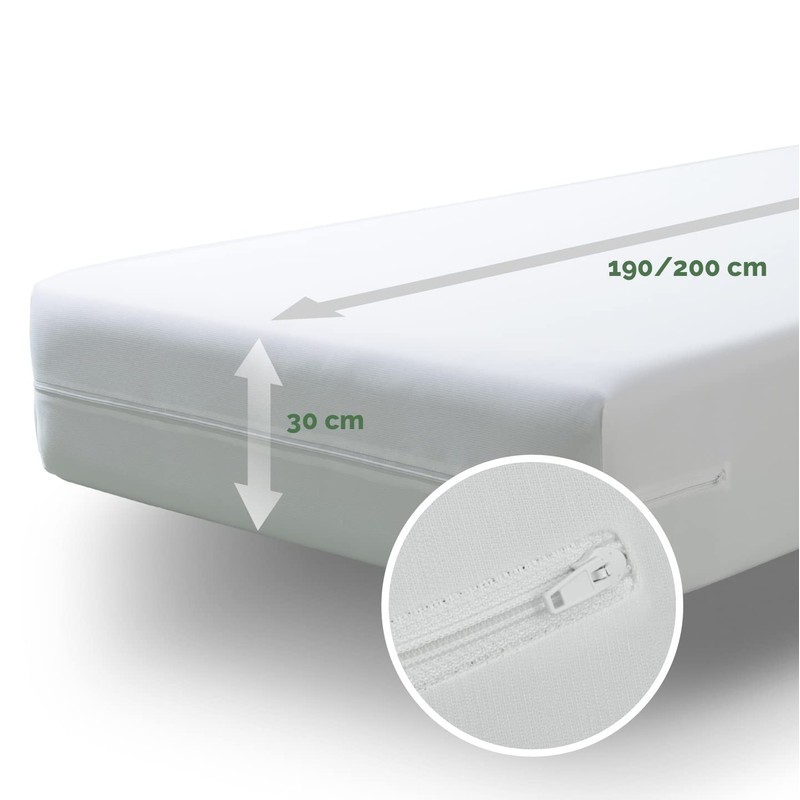 - Perfect fit. The mattress protector adapts to the mattress in the same way as a fitted sheet. It adapts perfectly to mattresses from 190 cm to 200 cm long and 30 cm thick.