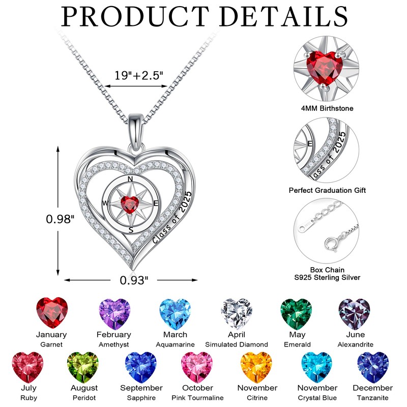 - 🎓2025 Compass Graduation Necklace for Her🎓: "Go in the direction of your dream!” Even when you are far away from friends and family or facing life's challenges, you have the courage and power inside to navigate your own way. life is an adventure and this Inspirational Graduates Compass Birthstone Necklace will remind you to enjoy the journey as you wander, dream, and reach for your goals. Perfect graduation gift. It is a unique gift for her to send you blessing.
