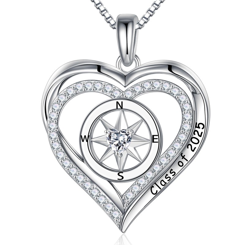 Turandoss Compass Graduation Gifts for Her, Sterling Silver Class of 2025 College Graduation Gifts