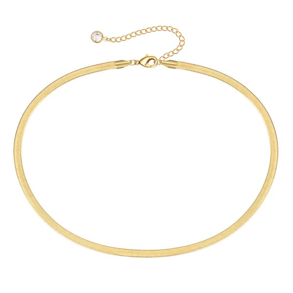 Turandoss Dainty Gold Thick Snake Choker - 14K Gold Paperclip Flat Herringbone Snake Chain Choker Paperclip Chain for Women 4MM Snake Chain Necklace