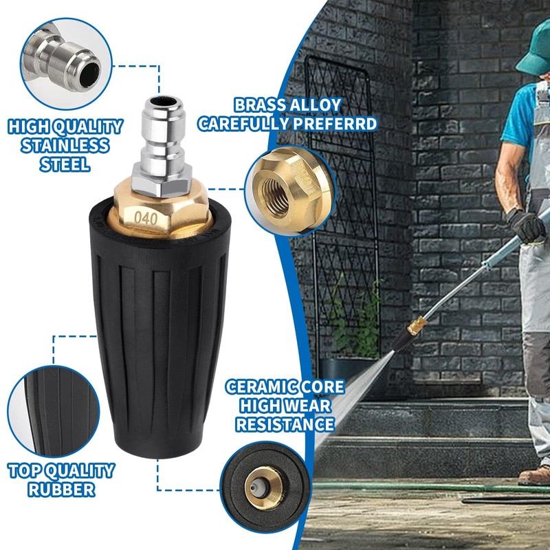 - 【High Quality and Durable Materials】: The nozzle is made of ceramic core, rubber shell, brass and stainless steel quick plug. The ceramic ball rotates under high pressure and is not easily worn, significantly improving the service life of the nozzle, and has high compressive and wear-resistant performance.