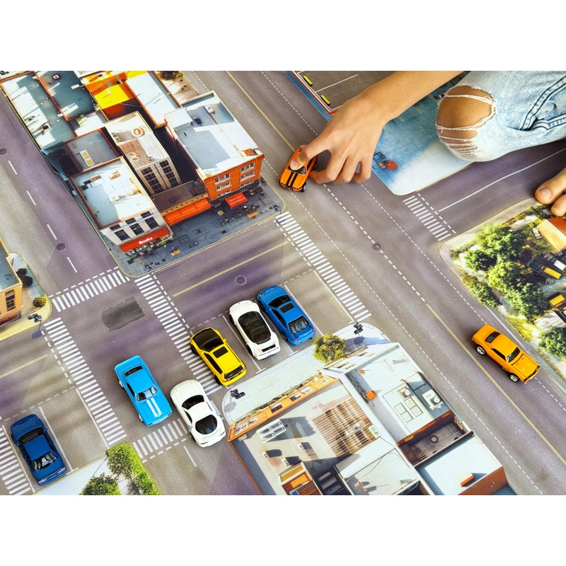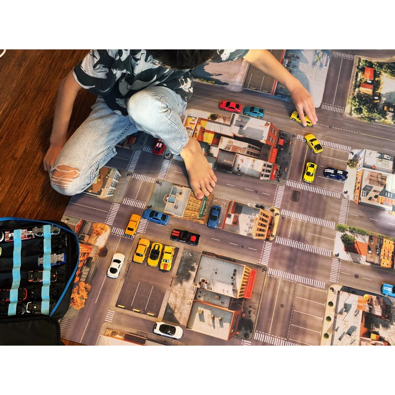 - DESIGNED FOR HOT WHEELS & MATCHBOX CARS. Sized just right for your child’s favourite die-cast cars, this mat is made to fuel fast-paced adventures. Whether they’re running errands to the bank or dropping cars off at the mechanic, every street is a new story waiting to happen.