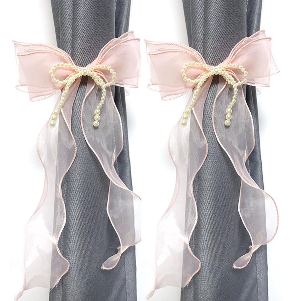 Turbokey Bowknot Curtain Tieback 2 Pcs Beautiful Decoration Curtain Strap Sweet Bow Curtain Rope Drapery Clip Holdback Hand-Knitted Tiebacks Macrame Drapery Holdbacks (Pink)