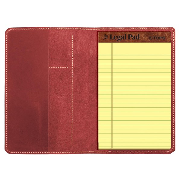 Turbosnail Genuine Leather Notebook Notepad Cover for TOPS The Legal Pad Writing Pads Docket 5" x 8" Cover, retro real leather portfolio folder cover organizer (Red)
