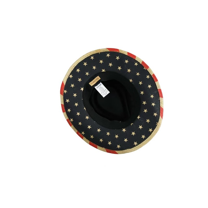 TUREVIEW Western Cowboy Hats Printed for Men and Women with Special Belt and Shapeable Wide Brim (80% Paper,10% Cotton,10% Polyester, Brown/Red)