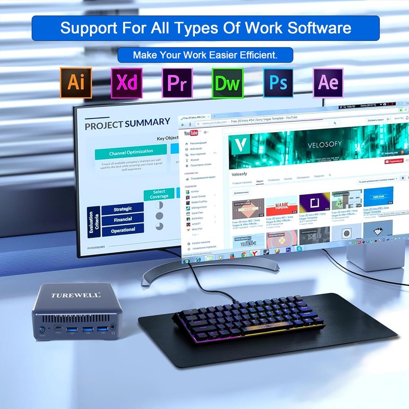 TUREWELL HSI 100 Mini PC with Alder Lake-N100, 16GB DDR4 RAM 512GB SSD, WIFI6...