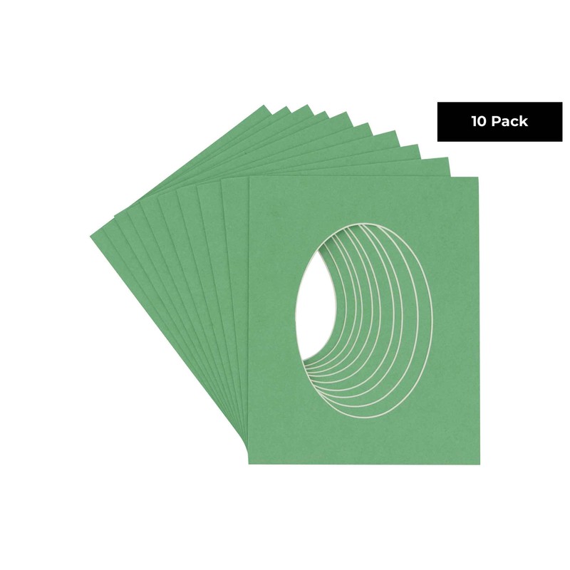 Turf Green Jade Acid Free 11x22 Oval Picture Frame Mat with White Core Bevel Cut for 5x15 Pictures - Fits 11x22 Frame - Pack of 10 Matboard Show Kits With Acid Free Backings & Clear Bags