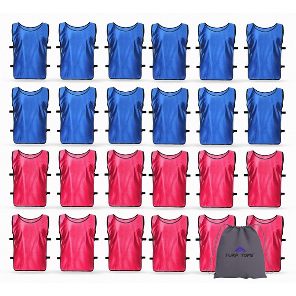 Turf Tops Soccer Pinnies & Bibs for Adults and Youth: Essential Team Scrimmage Vests and Pennies for Sports - 24 PCS