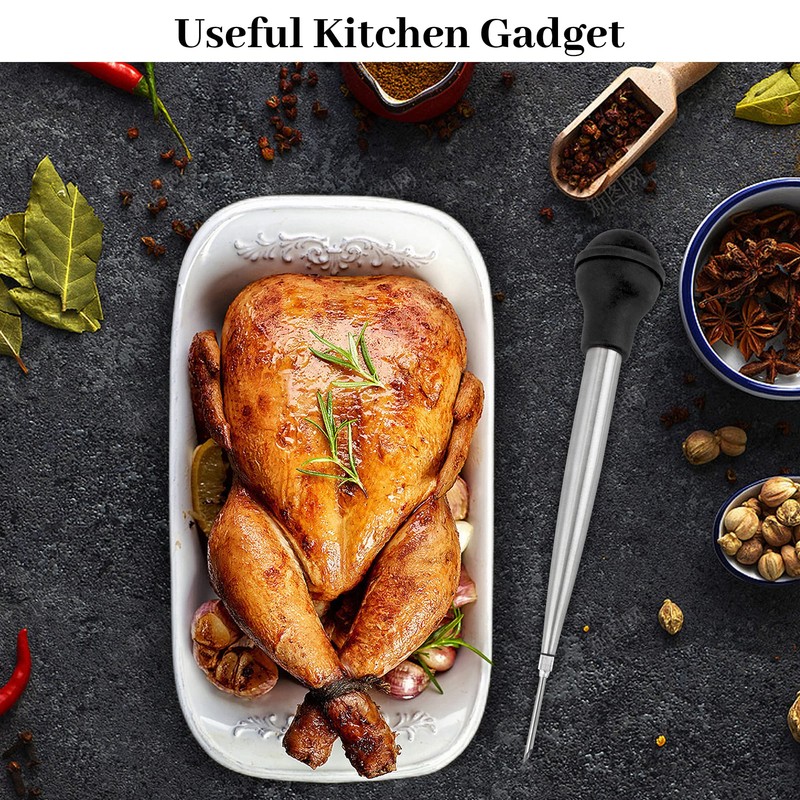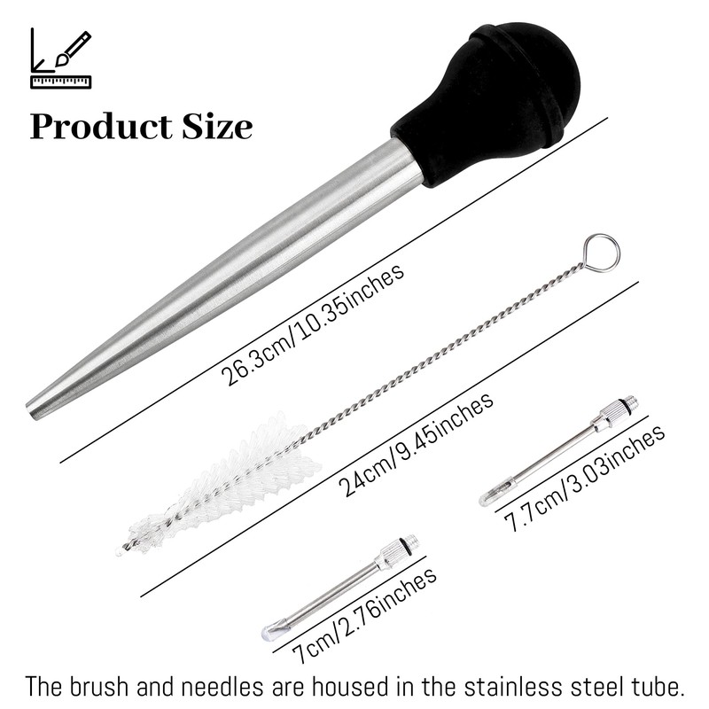 - Turkey Baster Set: The turkey baster set contains 1 bulb, 1 stainless steel tube, 1 cleaning brush, and 2 different turkey injector needles for flavor, it's a good kitchen assistant for your next Thanksgiving or Christmas dinner.