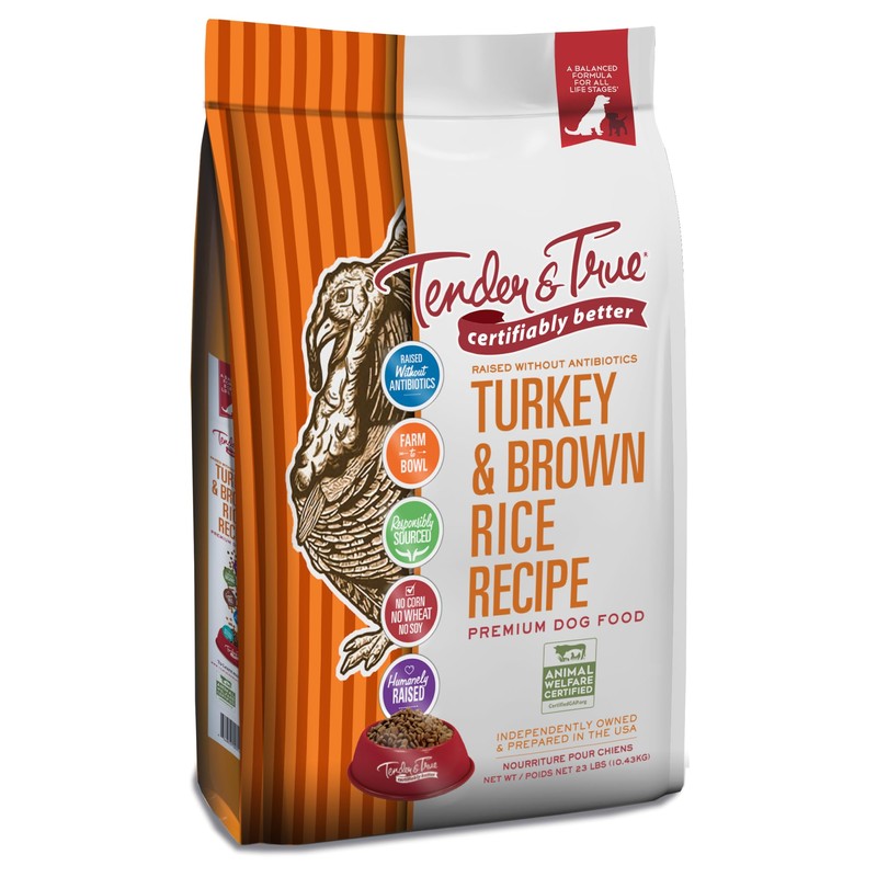 - Humanely raised turkey as the first ingredient Global Animal Partnership (G.A.P.) certified humanely raised Grain-inclusive with premium brown rice No artificial flavors, colors, or preservatives No corn, wheat, or soy Prepared in the USA