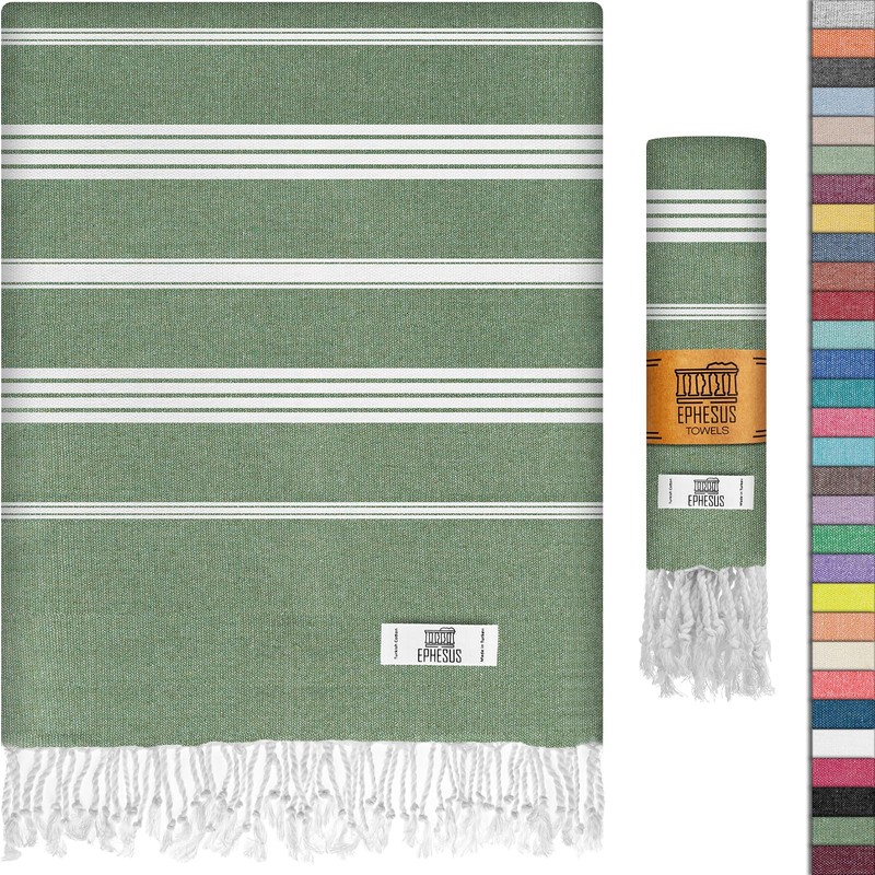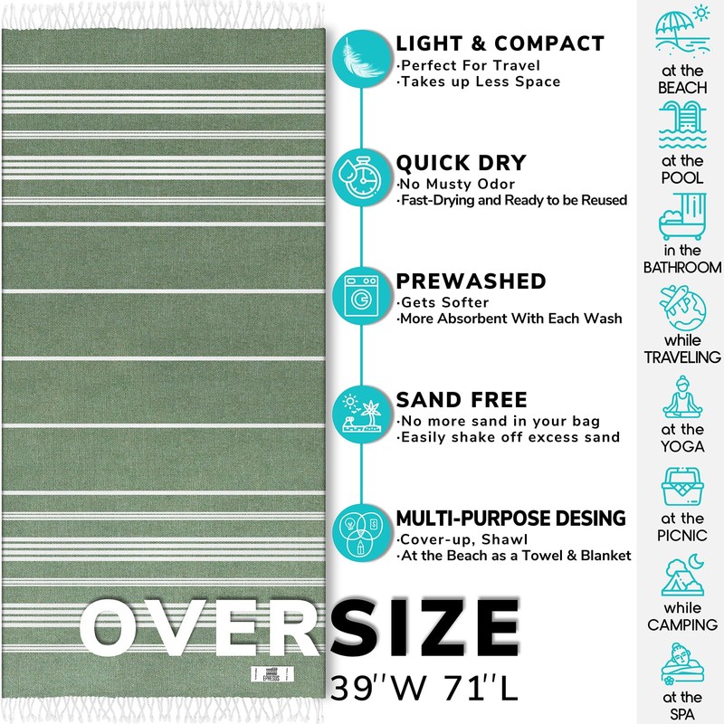 Turkish Beach Towel - 38x70 inch Oversized - Sultan Design - Turkish Towel for Beach, Bath, Pool, Gym, Yoga - Prewashed, Lightweight, Quick Dry (Army Green)