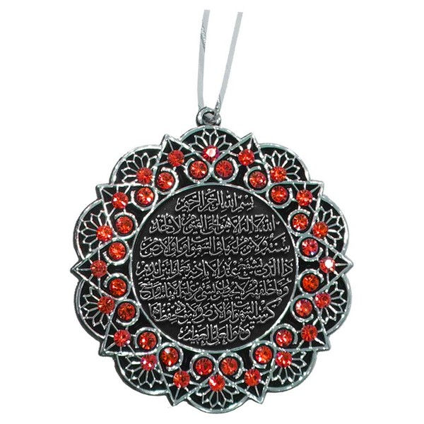Turkish Islamic Ottoman Double-Sided Ayatul Kursi Nazar Dua Star Shaped Car Rear View Mirror Hanger Medallion Pendant Accessory (Silver/Red)