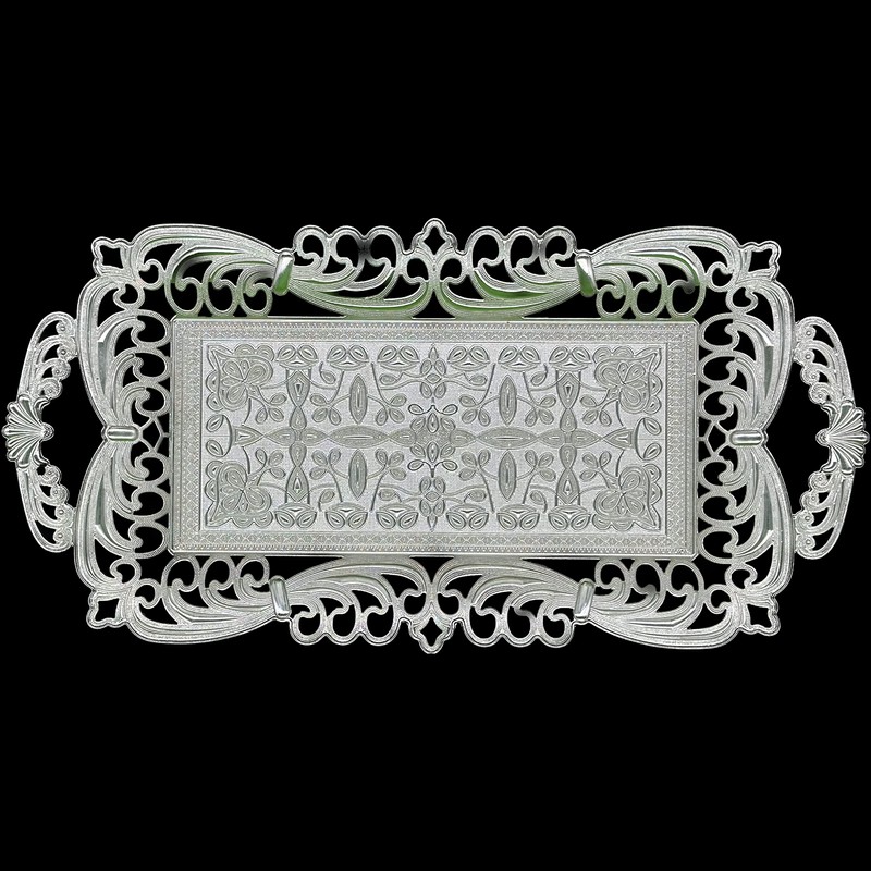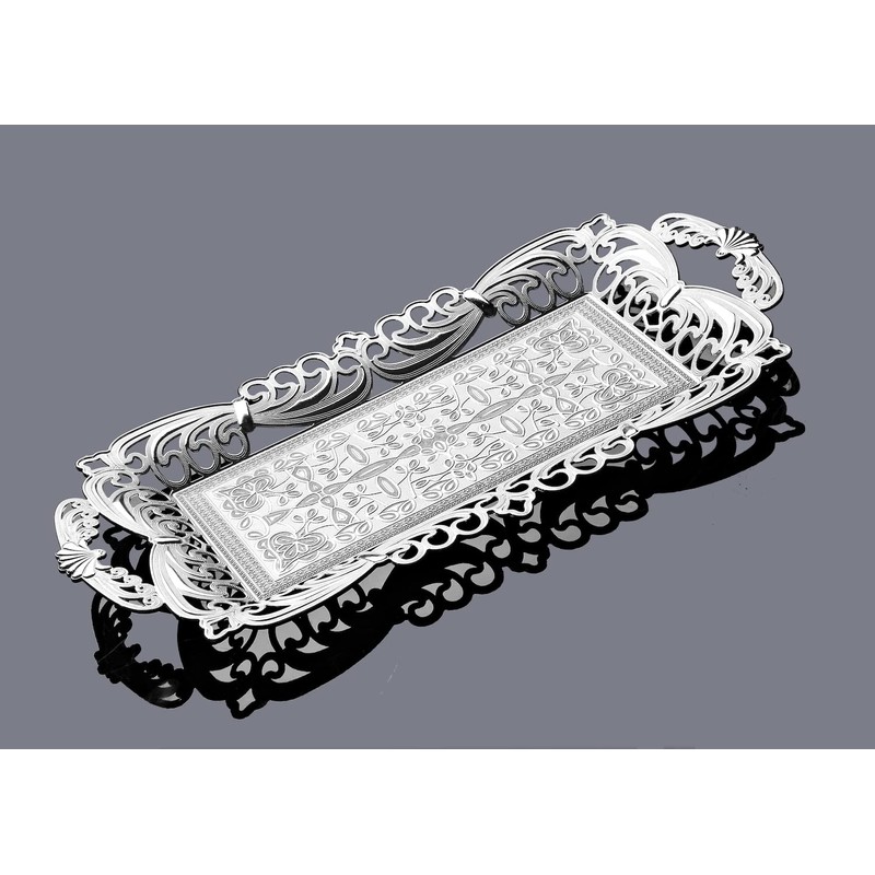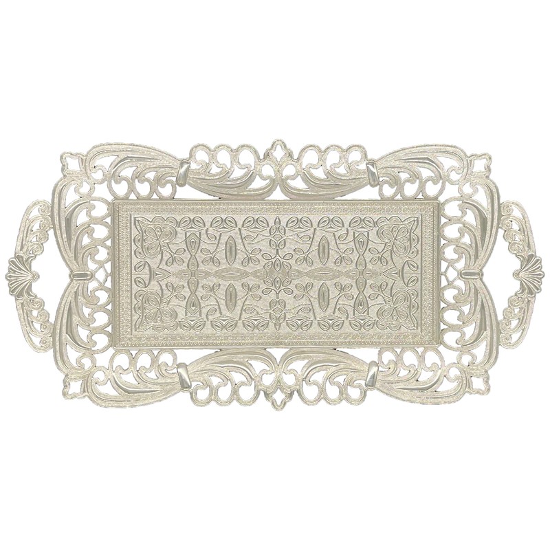 Turkish Tea Coffee Serving Tray with Handles Ottoman Decorative (Silver)