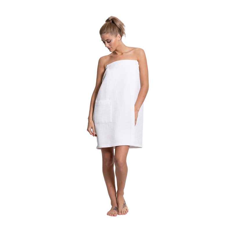 Turkuoise Linen Lightweight Spa/Bath Waffle Body Wrap with Adjustable Closure (White, Small/Medium)
