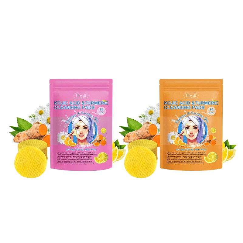 Our turmeric acid cleaning spacers contain glycerin, turmeric root extract, and kojic acid. It can effectively lighten the skin tone, even the skin tone, fade the stain. Its use method is very simple: 1. First, moisturize the facial skin; 2. Take one piece of this product, gently rub on face, massage in circular motion; 3. Finally, rinse with water to promote absorption. Turmeric and kojic acid ingredients deep clean pores and remove excess soil. The delicate fiber gently exfoliates and enhances skin shine.