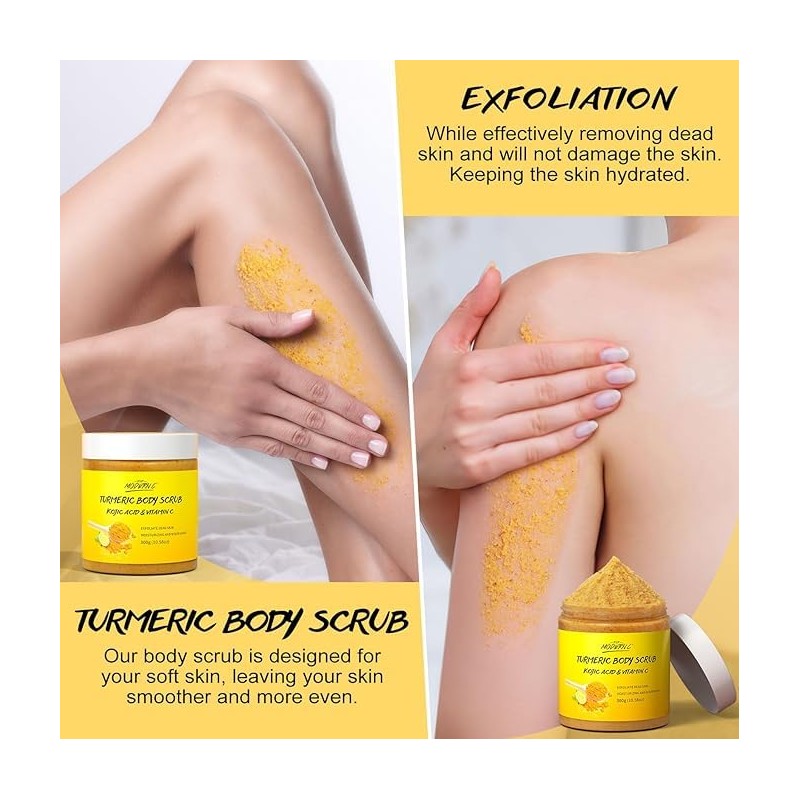 - Deep Cleansing: Turmeric Body Scrub not only exfoliates but also deep cleanses the skin, leaving it refined and smooth.