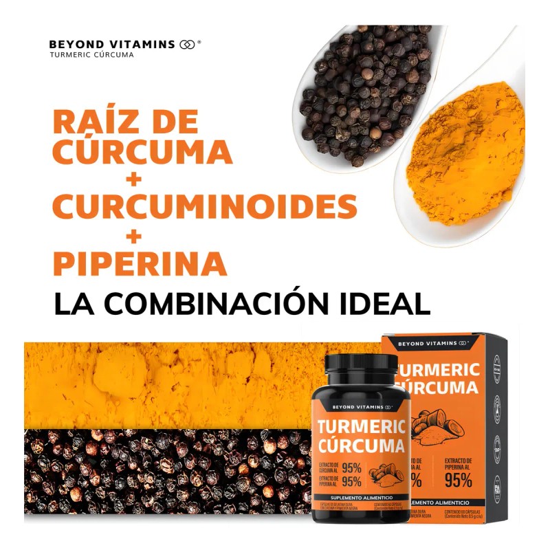 Turmeric Crcuma Con Extracto De Raz De Crcuma Estandarizada Al 95 Y Pimienta Negra Al 95 - Curcumina - 95 De Curcuminoides - Suplemento Alimenticio -