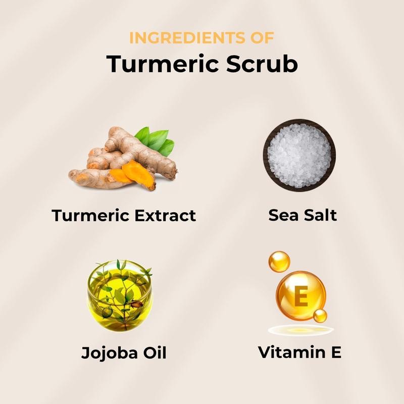 - Ingredients: Sea Salt,Jojoba Oil,Grape Seed Oil,Sweet Almond Oil,Turmeric Extract,Vitamin E