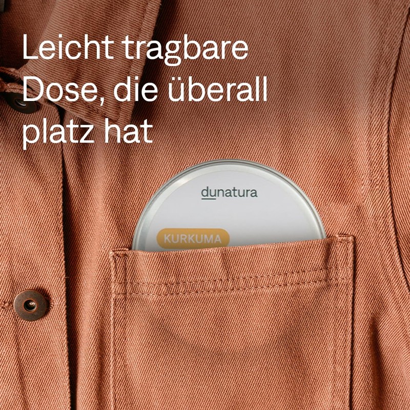 Turmeric extract is considered valuable plant substances. Turmeric has been used traditionally for centuries. Our highly concentrated turmeric extract contains 95% curcumin combined with natural turmeric powder to maintain the full spectrum of all components of a natural turmeric root. Optimally complemented with piperine for a high bioavailability. Our practical solution is that we now offer these vegan hard capsules in a convenient, easy-to-carry and reusable can.