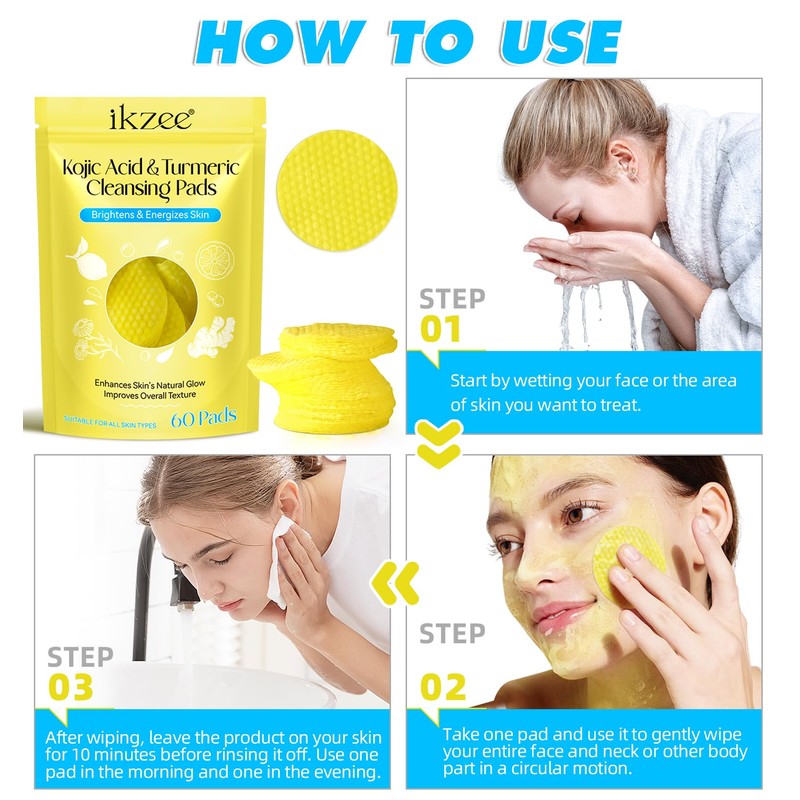 • KOJIC ACID TURMERIC CLEANSING PADS: Made with the finest natural skin-friendly ingredients that nature can offer, these luxuriously soft cleansing pads have a gentle yet firm feel that promotes a smoother, more vibrant complexion with every use, while enhancing overall texture. Ideal for daily face washing, deep pore cleansing, exfoliating, removing impurities and removing makeup.