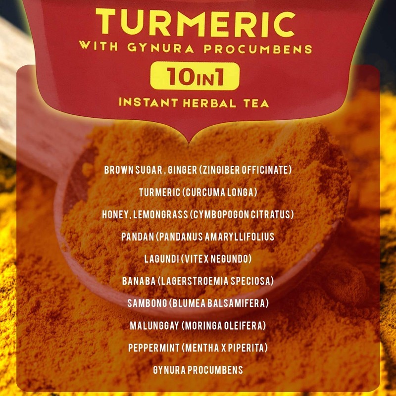 Yamang Bukid 10 in 1 Turmeric Tea takes “delicious and healthy” 10 steps further by providing 10 equally acclaimed powerful herbs in one amazing powder. Now you can get the all the health benefits of Pandan, Sambong, Lagundi, Banaba, Ginger, Malunggay, Gynura Procumbens, Lemongrass, Peppermint and of course, Turmeric in one super packed drink that can be enjoyed hot or cold, added to shakes and smoothies and used in marinades. Any of these renowned herbs on its own already has a variety of benefits but to have 10 herbs and spices together is truly something else. Combined, these herbs and spices of nature provide a wide variety of protective, preventive and health promoting derivatives that help support the natural functions of the body. They are also known to contain powerful antioxidants, anti-inflammatory agents, anti-aging and analgesics. Yamang Bukid 10 in 1 Turmeric Tea contains herbs and spices that have long been used in Ayurvedic medicine -known as the world’s oldest holistic healing systems developed almost 3,000 years ago- it is believed that these herbs and spices bring health and wellness by contributing to the delicate balance between mind, body and spirit. So go ahead and enjoy the smooth, rich, spicy flavor glazed with honey of our Yamang Bukid 10 in 1 Turmeric tea, it’s delicious and it’s incredibly good for you!